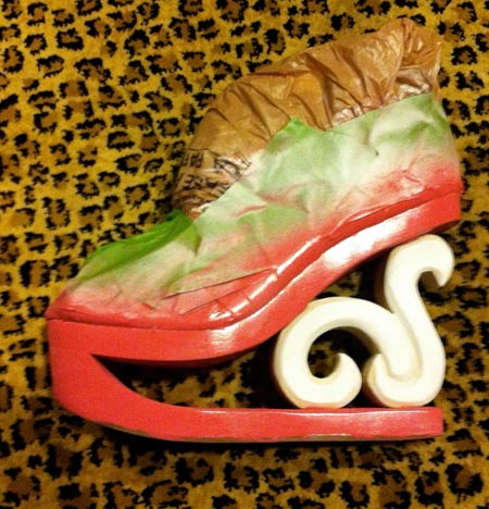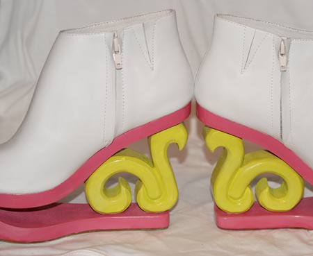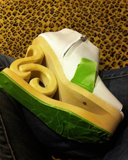 FYI- the shoes are actually quite comfy. they took a bit to get used to the hieght and little bit of wobble, (even though I wear platforms a lot, these are a little more ‘perched’ feeling…) but they aren’t even bad and I got a couple blisters the first time I wore them but none since. Really comfortable and the leather is nice and soft.