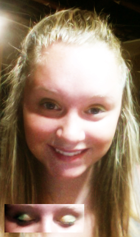 Sarah's Muchness pic of the Day! Day 1- "Today i used green and gold eye shadow, and NO eyeliner. This makes me feel much muchier, because it is brighter and makes me feel bubblier. It is also very 80’s inspired, as is my hair. 😉 This brings me one step closer to my muchness!"