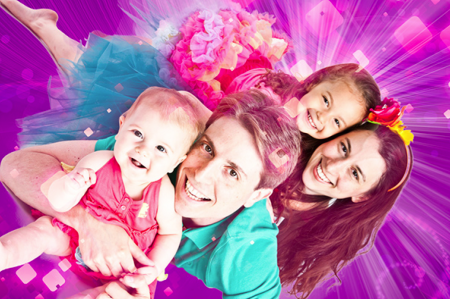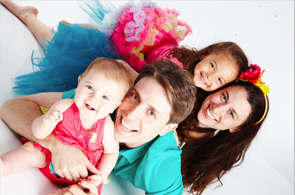 LOL I agree with Vadim (I know, admitting that I actually agree with Vadim left a bad taste in my mouth ughh) I prefer the family portrait with the white background. I feel like the white background really highlights your very cute Betsey Johnson dress and Molly’s equally adorable confection of tulle on her dress—it’s cleaner and places more emphasis on the muchness of what you are wearing! The purple background in my opinion actually takes away from your bright colors and makes you guys recede into the background (sorry, just don’t call me a muchness killer)