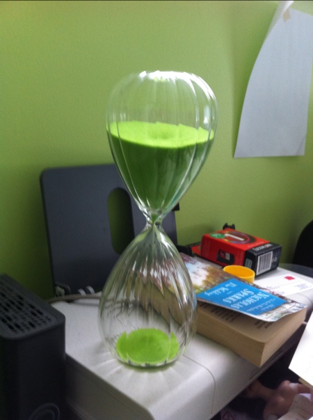 Ive given myself a to-do list for the day. To keep me on track i got this awesome lime green hourglass. Focus in what i need to get done in the next hour and then keep track of the time visually. So far, i think it’s working. Except taking the time to blog about was not on my to-do list!!!!