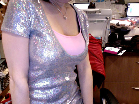 TOVA’S MUCHNESS PIC OF THE DAY Posted on April 29, 2011 by Tova So, I’m pretty sure I spent 95% of the day wearing my shirt backwards. But really, a disco ball doesnt even have a front and back so…. does it count? Before hmmmm.... yathink? In Motion!!!! Yay!!! Love & Muchness, Tova View all posts by Tova → Blog Related PostsINTRODUCING: BTM vs. ATM ; COAT HOOKSThe History of glitter- This video is Muchness squared!MUCHNESS PIC OF THE DAYAt odds with myselfEverything is a journey…