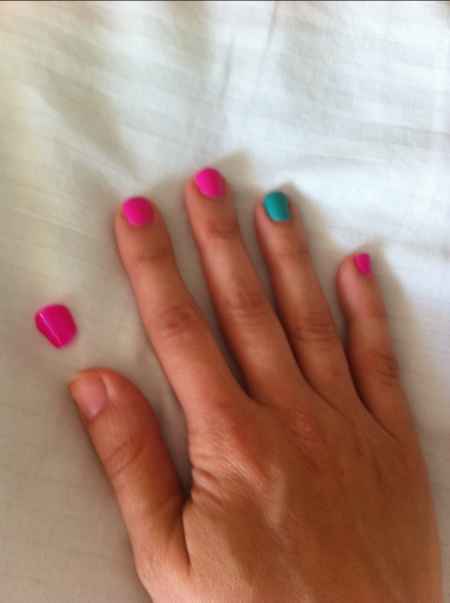 Every one of my nails had peeled off within 40 hours. For a $45 manicure!!!!! So. Not. Muchy.